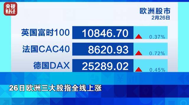 26日欧洲三大股指全线上涨