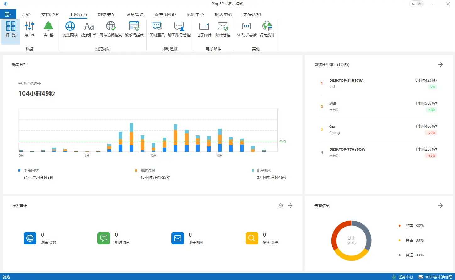 A: 能。Ping32具备强大的行为管控与溯源能力。系统可强制禁止未授权环境下的截屏操作(黑屏处理),并部署动态屏幕水印(实时显示员工姓名、IP、时间)。即便有人试图用手机拍照,水印也能清晰追溯泄密源头,形成强大的心理威慑,有效遏制内部恶意泄密行为。