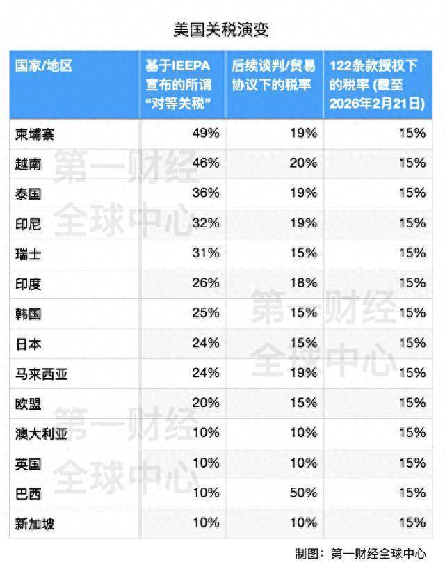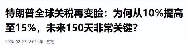 白宫紧急换法 特朗普并没有轻易认输,他开始翻箱倒柜,寻找新的法律武器。被最高法院封杀的《国际紧急经济权力法》失效后,特朗普从法律箱底找出了《1974年贸易法》第122条。这条法律像一把吃灰已久的老枪,从未在实际中使用过,规则简单明了:税率上限15%,时限上限150天,一旦超过这个期限,或者需要延长,就必须请求国会的批准。