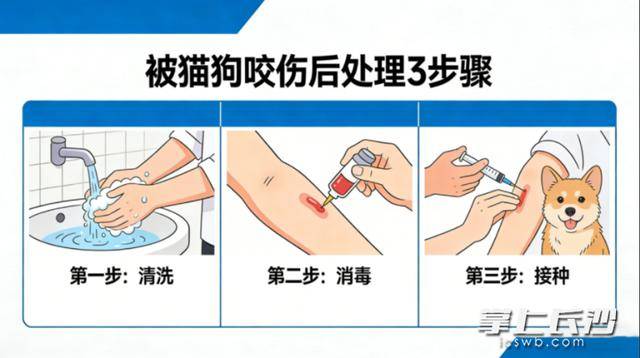 若不慎被宠物咬伤、抓伤,彭友华提醒,牢记“一洗、二消、三免疫”的黄金处理原则,及时处理才能最大程度降低感染风险、减少留疤的可能。