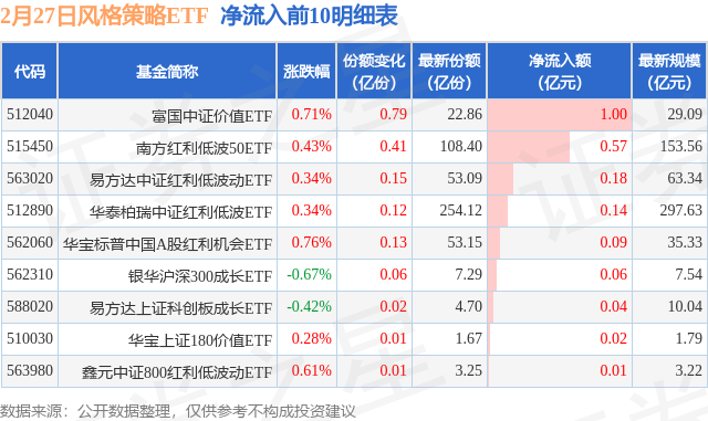 【ETF观察】2月27日风格策略ETF净流出4.6亿元