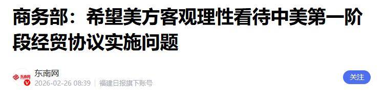 对于美国的态度摇摆,商务部在26日回应中美经贸磋商问题时表示:中方愿与美方一道,共同落实好、维护好两国元首釜山会晤和2月4日通话共识;但如果美方执意推进相关调查,甚至以调查为由出台关税等限制性措施,中方将采取一切必要措施,坚决捍卫自身合法权益。