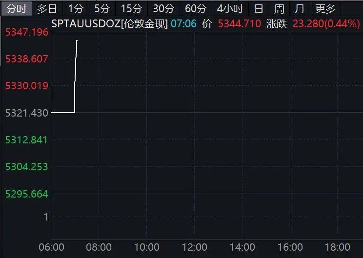 国际黄金拉升,COMEX黄金期货3月2日收涨1.81%,报5342.8美元/盎司;COMEX白银期货跌3.83%。3月3日开盘,现货黄金、白银均直线拉升。