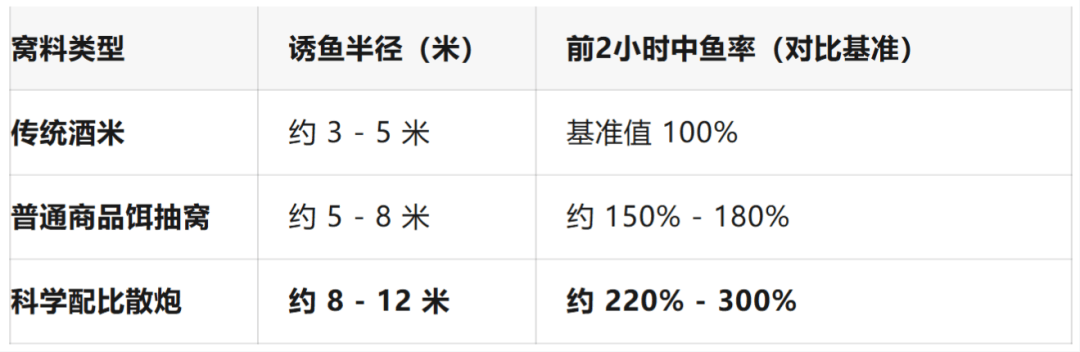 可能有的钓友还不信,咱们用数据说话。根据一些钓友的实战记录和有限的实验数据显示,在合适的季节和鱼情下,使用合理的散炮策略,诱鱼效率确实远超传统窝料。
