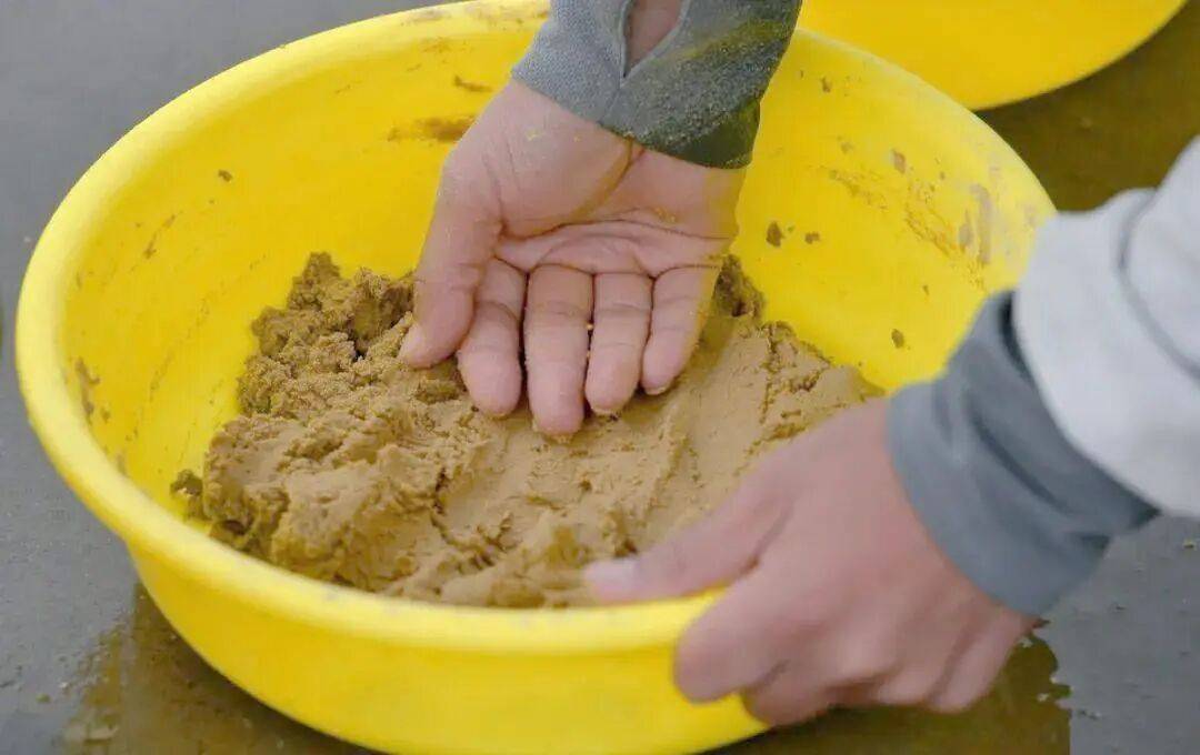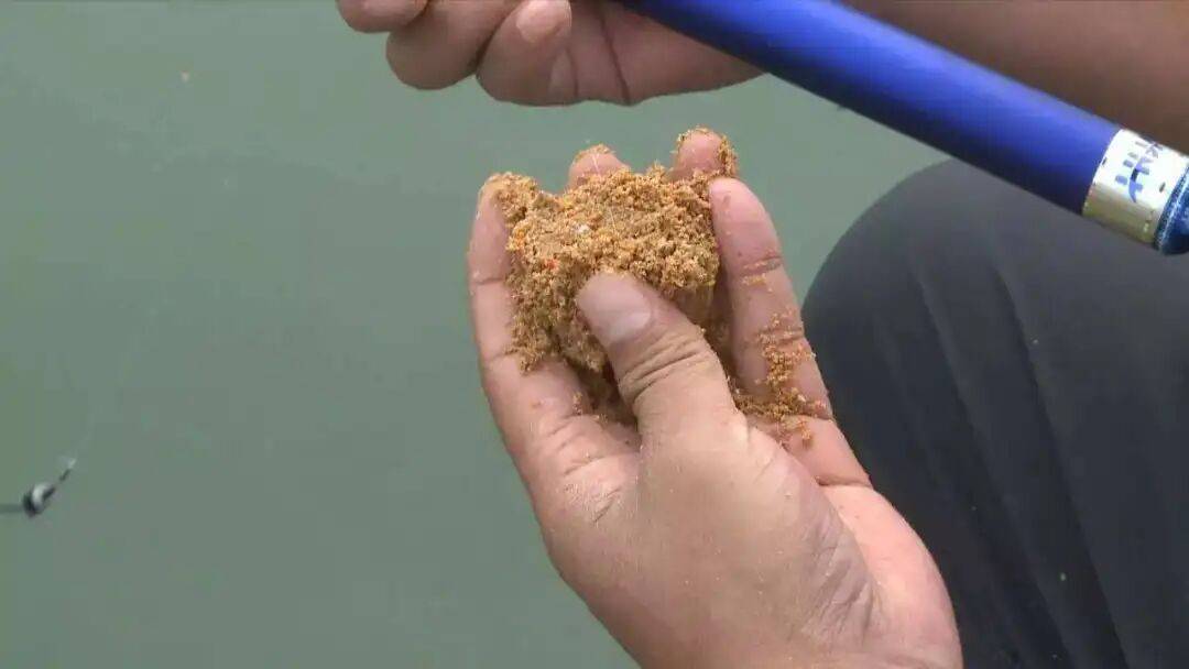 前期诱鱼(抢鱼):捏在钩柄上,力道要松,形状要不规则,棱角分明。这样入水即炸,雾化最快。我称之为“天女散花式”。