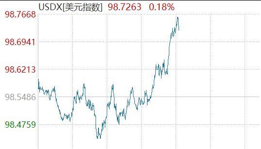 黄金白银的跳水,或许跟美元指数有关,2日晚美元指数大涨超1%,截至3月3日14:10,美元指数继续上涨,逼近99关口。
