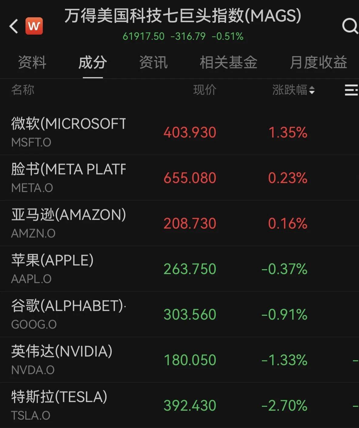 美股大型科技股涨跌互现,万得美国科技七巨头指数下跌0.51%。个股方面,特斯拉跌超2%,英伟达跌超1%,微软涨超1%。