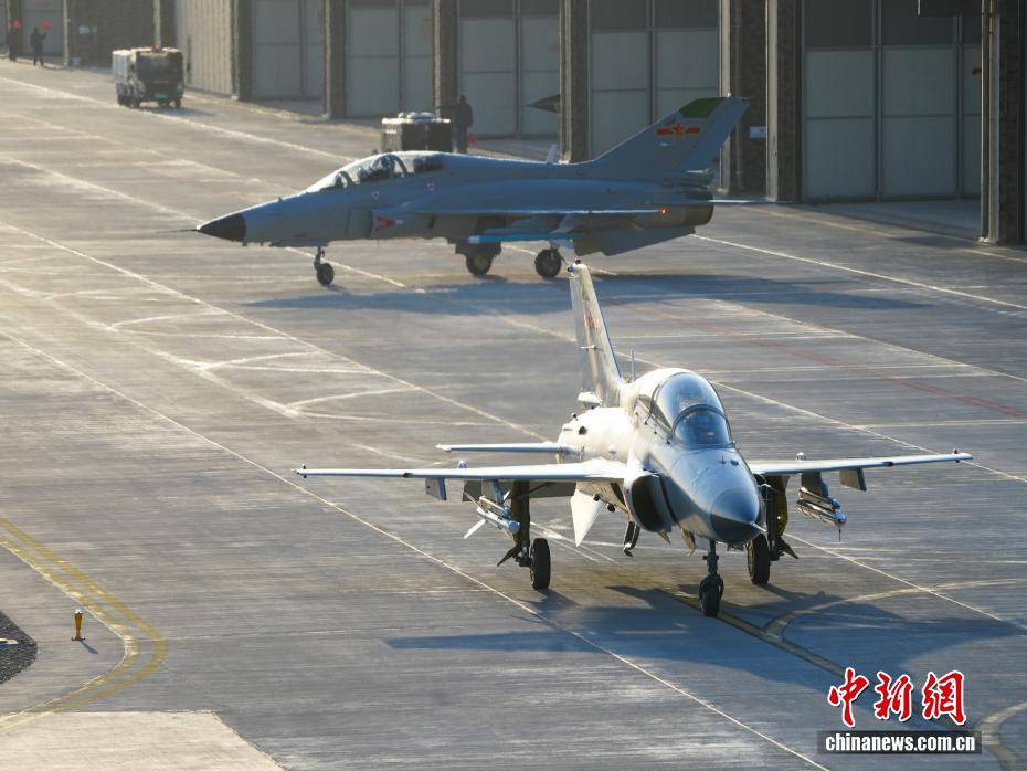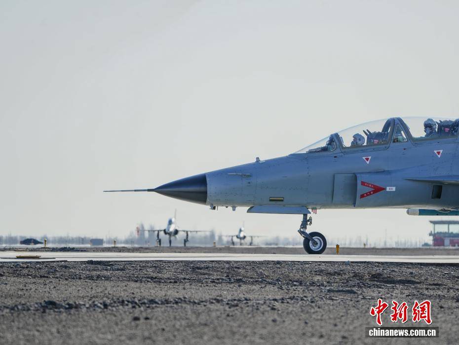 近日,空军西安飞行学院某部组织开展节后飞行训练。随着塔台指挥员一声令下,数架战鹰依次滑出、昂首升空,奔赴任务空域。据悉,此次节后开训旨在进一步提升飞行官兵的技战术水平,锤炼打赢本领。图为双机编队飞行。周锋 摄