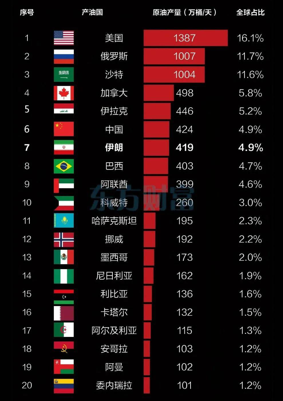 全球主要产油国排名