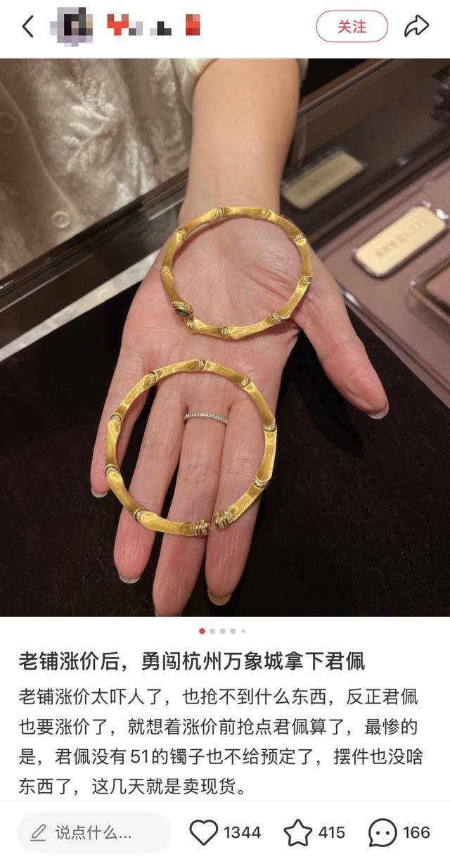 一只50克重的竹节手镯,昨天还是97530元,一觉醒来暴涨到了143080元,涨幅超过46%。