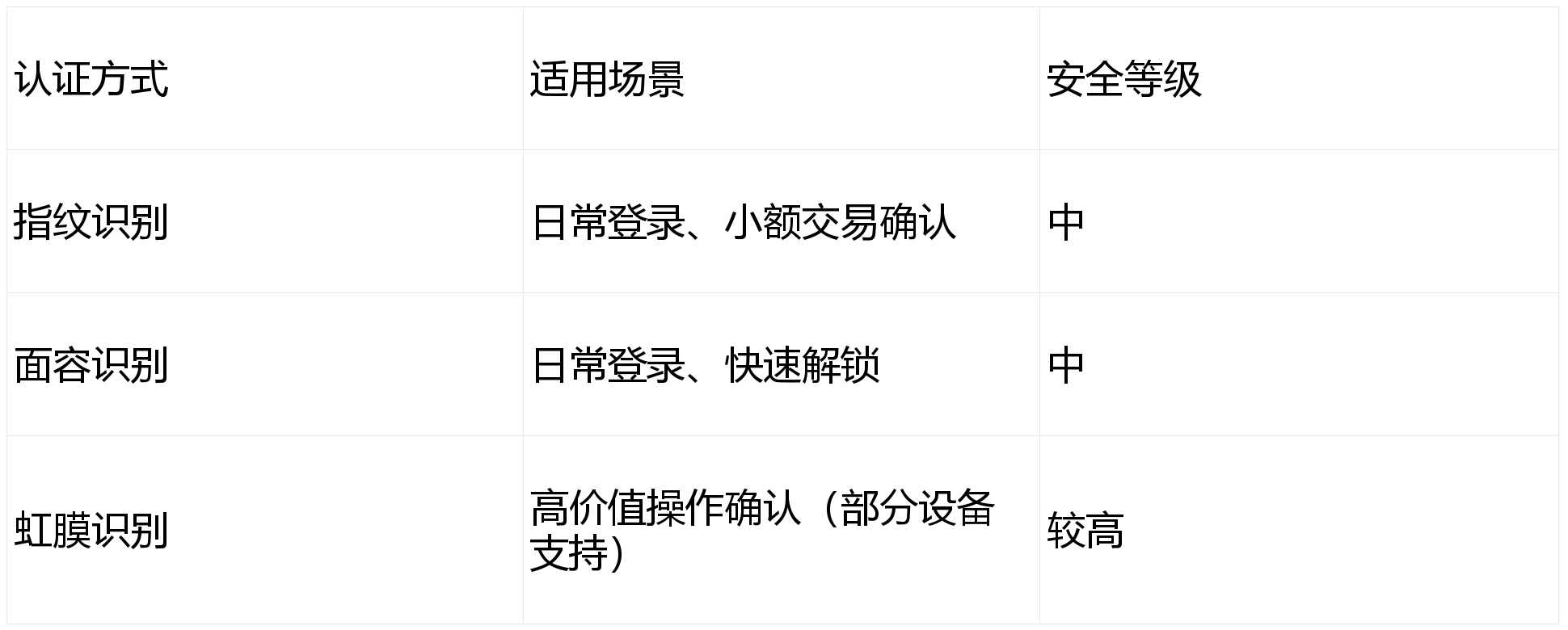 • 生物识别数据仅存储于本地设备,不上传服务器