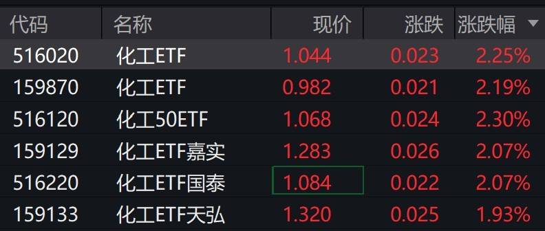 化工概念股走强,盐湖股份、云天化涨超6%,华鲁恒升涨超5%,天赐材料涨超4%。