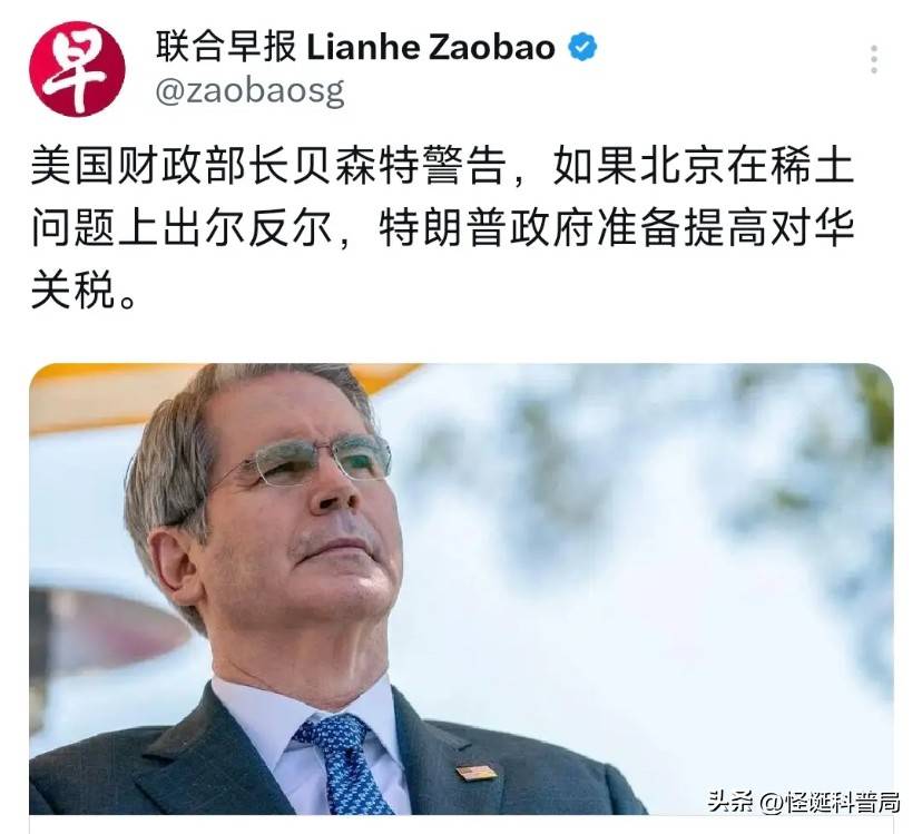 贝森特的言论表明,美国对稀土依赖产生了深深的不安全感。在资源被对手主导、规则受挑战的情况下,美国焦虑明显。中国并没有将所有通道关闭,而是通过制度化、透明化管理来控制节奏,宣布暂停管制、按序审批,却从不保证对方永远能以最低价格获得最大份额。美国的反应,本质是为下一步策略留备选项:口头警告,同时亮出手中工具,既可谈合作,也可随时制裁。