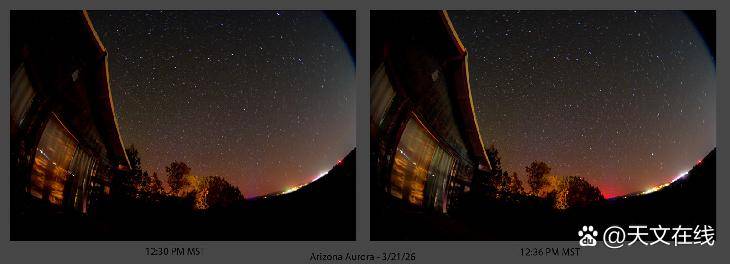 #spaceweather天文酷图# #天文酷图# 【克里斯舒尔2026年拍摄亚利桑那深红色极光】由克里斯舒尔于2026年3月21日在亚利桑那州佩森市拍摄【拍摄参数】使用相机:佳能CanonEOSDIGITALREBELXTi曝光时间:180秒光圈:f3.5感光度:800...