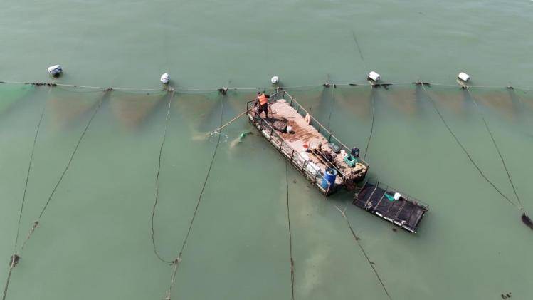 一尾鳗鱼苗重约0.15克,相当于3滴水的重量。因其完全依赖野生捕捞,又被渔民们称为“水中软黄金”。近日,江苏省如东县长沙镇的渔民赶往30海里外的作业船上捕捞鳗鱼苗。鳗鱼苗作业平台通常由一艘母船、一艘装载网具船、一艘作业船组成。每年元旦前后张网迎鳗鱼苗,到4月底结束捕捞。如东位于沿海与长江“T形”交汇点,凭借独特的咸淡水环境,形成了覆盖鳗鱼苗捕捞、生态养殖到精深加工的完整产业链。(王军 摄)