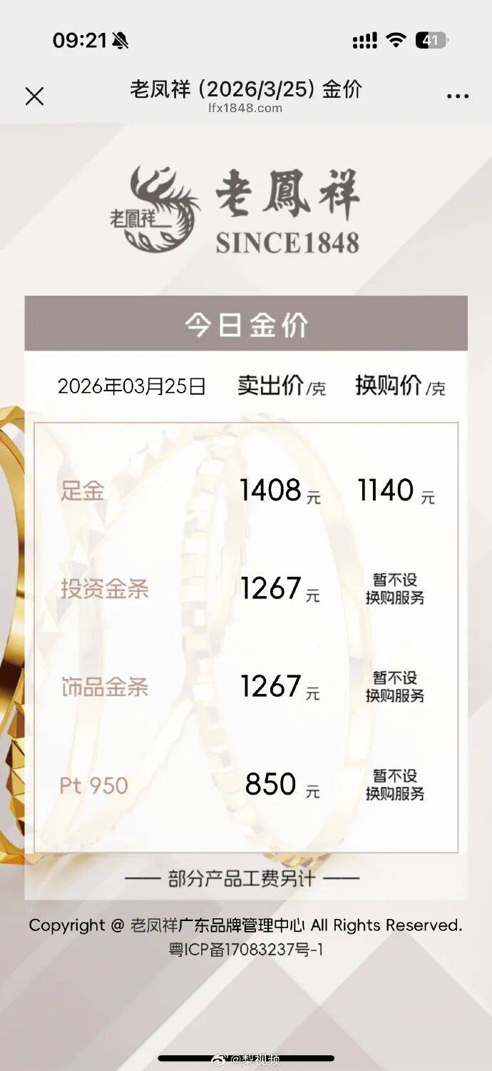 老凤祥足金饰品标价1408元/克,较前一日1345元/克的价格上涨63元/克。