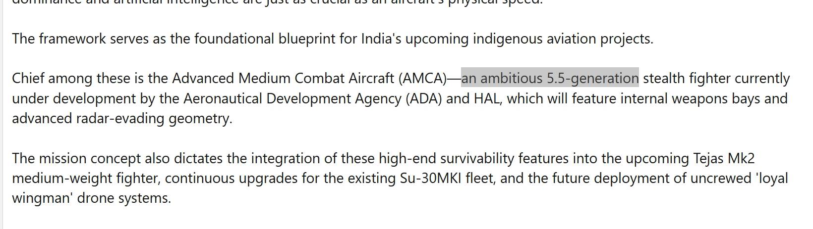 在六代机领域,这八个阶段的要求必须全部实现。战机需以全域隐身能力悄然进入战场,消除空中威胁,精准打击关键目标,确认战果后安全返回,全程由人工智能辅助,实现作战效率的极致优化——包括战果最大化、战损最小化、人员负担轻量化与作战效能简化。印度防务强调,印度官员明确表示,未来空中优势将依赖隐形技术、AI决策和稳健的国内供应链无缝结合,从而在无需外部干预下保持作战准备。同时,另一家印度军事媒体国防动态报道,印度国防认证与航空认可中心(CEMILAC)首席执行官普拉萨德在会议上强调了生存能力与系统集成在第六代战机中的重要性,并指出印度航空在人工智能和系统设计方面仍需补强,否则难以在下一代战机研发中取得实质性突破。