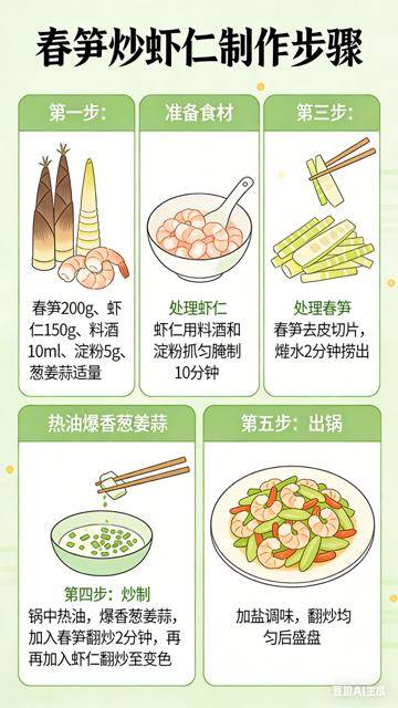 ✅营养亮点:虾仁补优质蛋白+钙,春笋的膳食纤维促消化,色彩鲜艳,孩子一眼就爱。