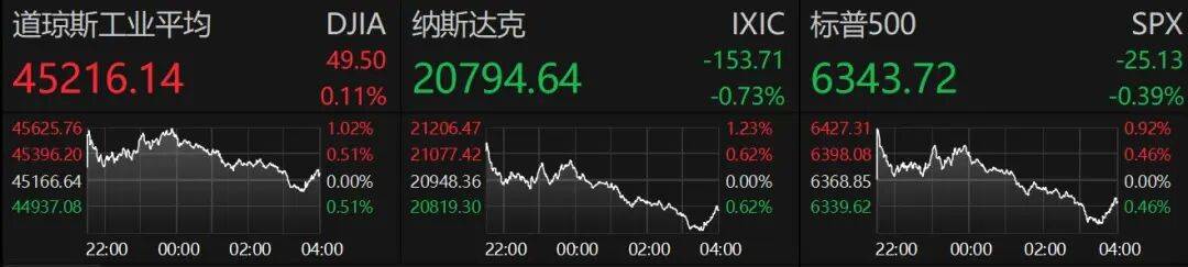 美股三大指数收盘涨跌不一,道指涨0.11%,纳指跌0.73%,标普500指数跌0.39%。芯片股集体下挫,西部数据跌超8%,闪迪跌超7%。