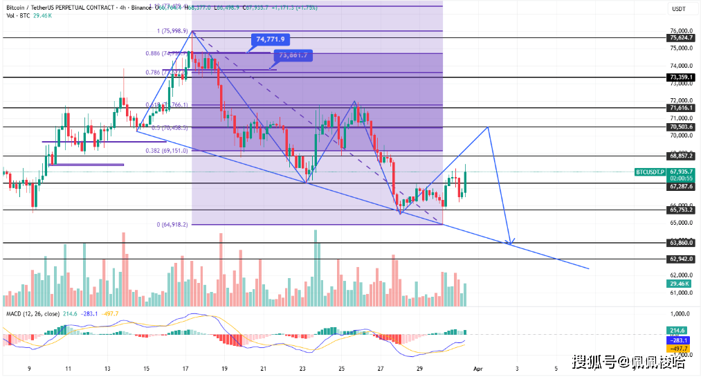 2. 四小时级别上,看跌订单块位于68,200–69,800美元区间,构成短期压制区域,该区间内可考虑继续布局空单。