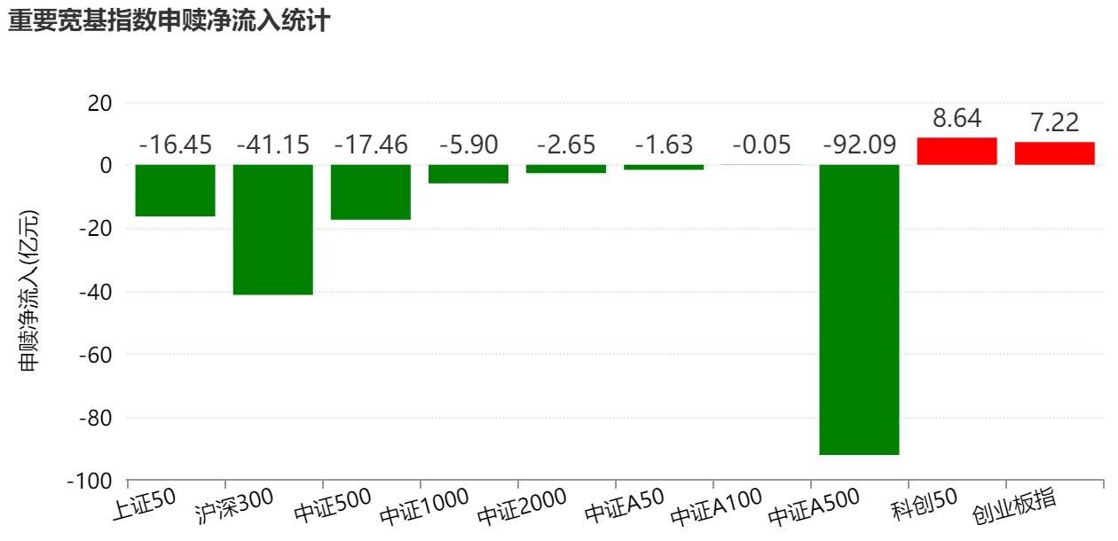 细分来看,主要宽基指数整体资金申赎统计显示,本周科创50、创业板指实现净流入,而中证A500净流出92.09亿元。