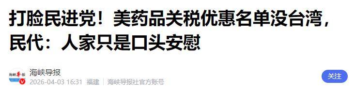 4月2日,那道象征100%关税的高墙刚刚升起,中美经贸代表在世贸组织的握手余温尚未散去。华盛顿的笔尖已经落下,特朗普签署了行政令,将进口专利药品及制药成分的关税一口气提高到100%。台湾地区最先感受到这道冷风。白宫公布的关税优惠名单中,欧盟、日本、英国赫然在列,而台湾地区却偏偏不见踪影。