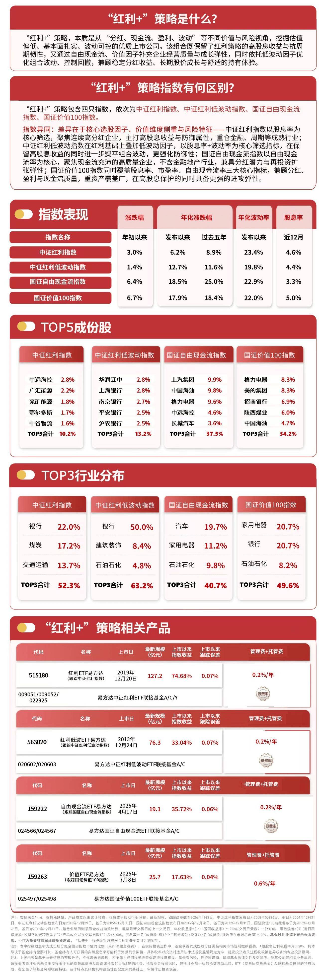 4月7日,“红利+”指数震荡分化,指数层面,中证红利指数上涨0.5%,国证自由现金流指数上涨0.3%,国证价值100指数上涨0.2%,中证红利低波动指数下跌0.5%,相关ETF中,价值ETF易方达(159263,联接基金A/C:025497/025498)今日净申购达1900万份。