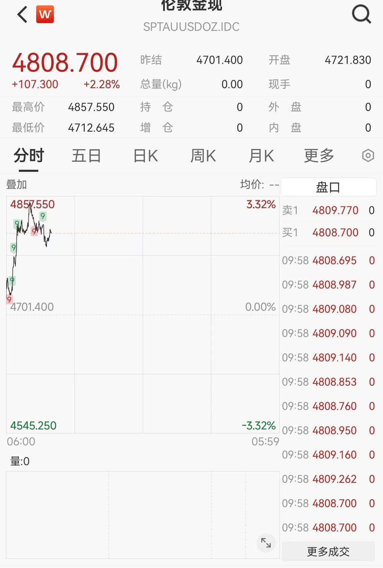 消息面上,美国总统唐纳德·特朗普和伊朗达成协议停火两周,以敲定结束这场扰乱全球市场的战争的谈判。现货黄金拉升一度站上4850美元/盎司,日内涨2.28%,迎来强势反弹。