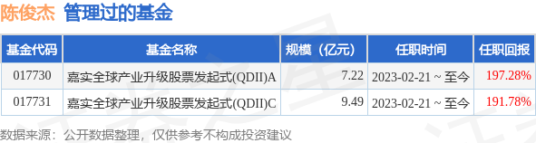 陈俊杰先生:中国国籍,硕士研究生。曾任浙商证券股份有限公司研究所电子行业分析师,天风证券股份有限公司研究所电子行业高级分析师。2021年3月加入嘉实基金管理有限公司任制造行业研究组行业主分析师。2023年2月21日担任嘉实全球产业升级股票型发起式证券投资基金(QDII)基金经理。