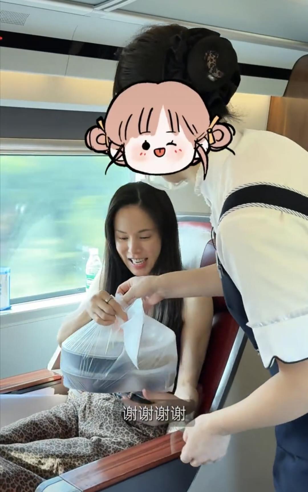 10月1日,曾饰演小龙女的中国香港演员李若彤发视频点赞高铁外卖,她在高铁上尝试点了一份南昌拌粉,“去不了南昌,但是可以尝南昌的饭。高铁外卖真的是非常方便。”