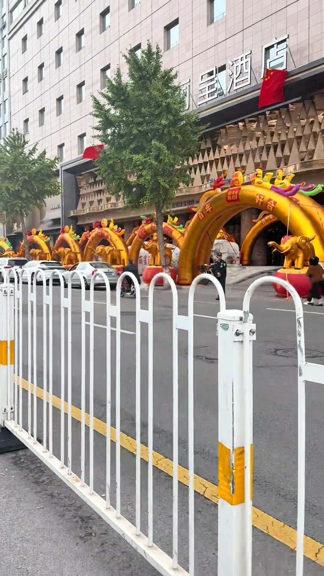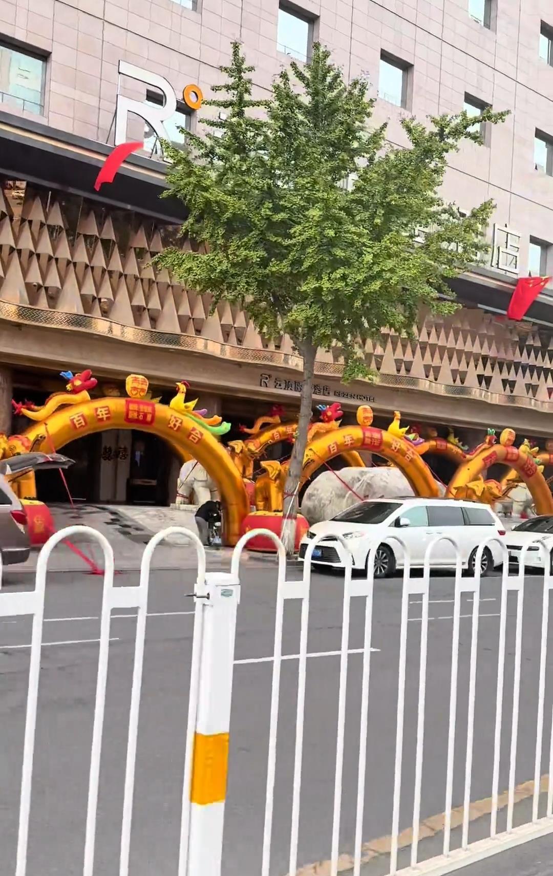 太原一酒店门口摆了11个婚庆充气拱门,店方:国庆节当天办了11场婚宴