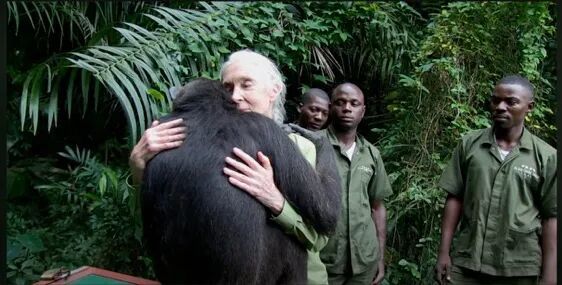 古道尔离世后,许多网友在社交平台上传递哀思,其中转发最多的一条视频,是古道尔2013年在刚果共和国的一个工作切片,被网友们称为“那个拥抱”。