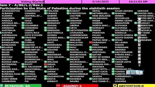 据凤凰卫视报道,在刚刚过去的联合国大会上,支持巴勒斯坦建国的国家已经接近160个。这是数十年来最大规模的支持浪潮,而且支持者中许多都是美国的坚定盟友。这种前所未有的转变为何发生?强大的支持浪潮会令巴勒斯坦离建国更进一步吗?