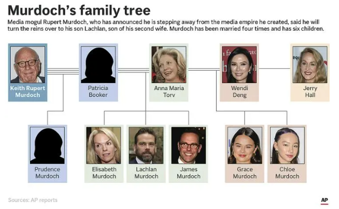 默多克老来得女,高兴地修改了家族信托协议,让两个小女儿与其他子女享有同等的家族信托收益比例,只是没有投票权。