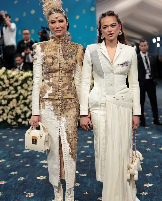 ·2025年6月,邓文迪(左)和大女儿格蕾丝在有着“时尚圈奥斯卡”之称的Met Gala上亮相。(英国《每日邮报》)