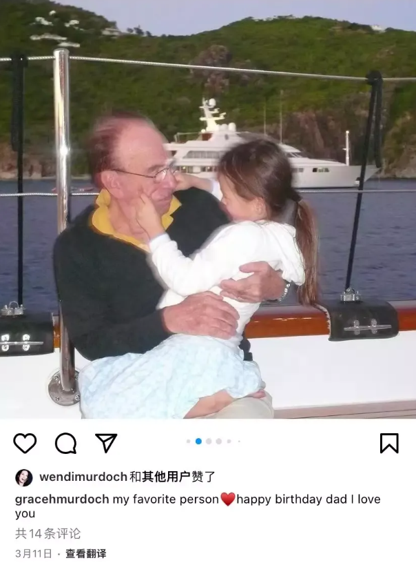 ·格蕾丝在父亲默多克生日时送上祝福。(其个人社交媒体账号)