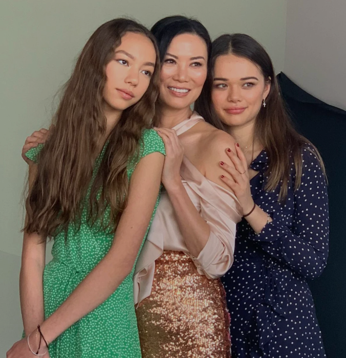 ·邓文迪(中)和两个女儿。(香港《南华早报》)