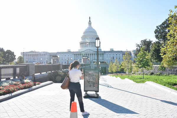 当地时间2025年10月1日,美国联邦政府因资金用尽“停摆”。这是自2019年以来美国联邦政府首次“停摆”。受政府“停摆”影响,华盛顿多个景点“关门”。图为国会大厦游客中心外的标牌写着“因资金用尽而‘关门’”。 IC photo