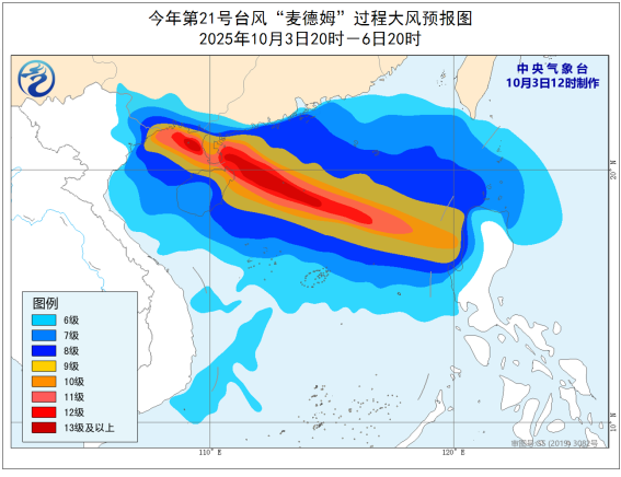 今天夜间起,南海东部等海域风力就将增大,并于4日至7日自东向西影响广东、海南、广西、云南等地。