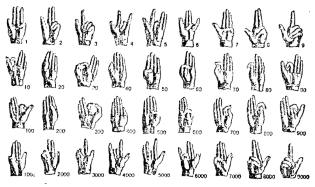 此外,学术界普遍认为,人类最早的记数工具是手。在现在北美洲的地尼丁杰族印第安人中,仍然还保留着手指计数的复杂方式。