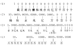 据杨占武、金立华等学人考察,“四位一进”制最晚在北宋时期(公元960—1127年)已被普遍使用,此时“算家以万万为亿,万万亿为兆,万万兆为垓”。
