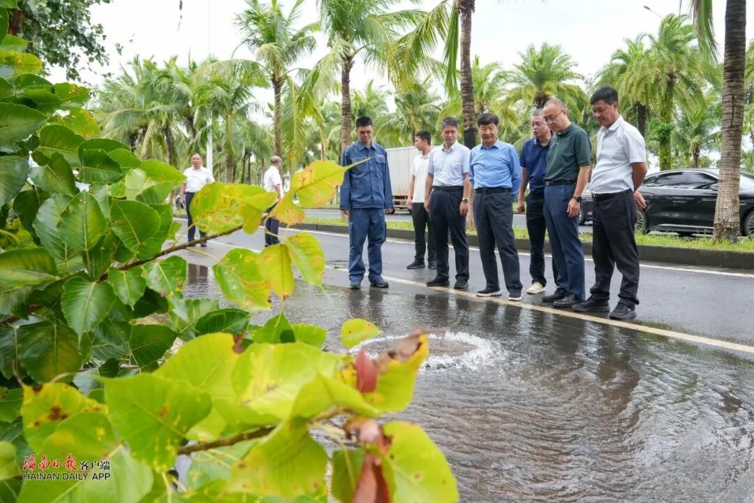 在海口市菜篮子江楠农产品批发市场、澄迈县老城镇鑫洪都购物中心、澄迈县老城镇玉堂村电力维修点、海口市迎宾大道积水点,刘小明实地查看农产品批发市场、商超保供稳价,以及村庄电力修复、城市道路排水等工作进展。