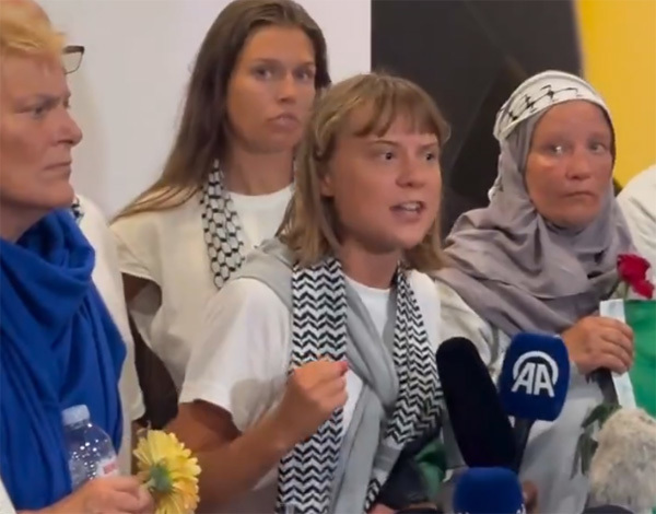 据路透社报道,通贝里等161名活动人士6日乘坐飞机抵达希腊。在雅典机场,通贝里对声援巴勒斯坦的人群发表演讲,严厉谴责以色列在加沙地带实施种族灭绝,并批评部分西方国家旁观、纵容以色列的行为。她呼吁国际社会采取行动,阻止以色列围困和杀害巴勒斯坦人。