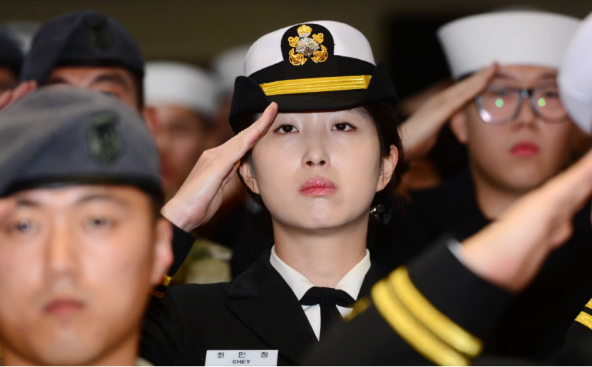 韩国SK集团会长崔泰源的二女儿崔敏贞,虽然身为女性无需服役,却在2014年通过严格选拔,成为海军少尉。次年,她在韩国驱逐舰上执行了6个月护航任务,后来又进入韩国海军第二舰队司令部服役,直到2017年以中尉军衔退役。