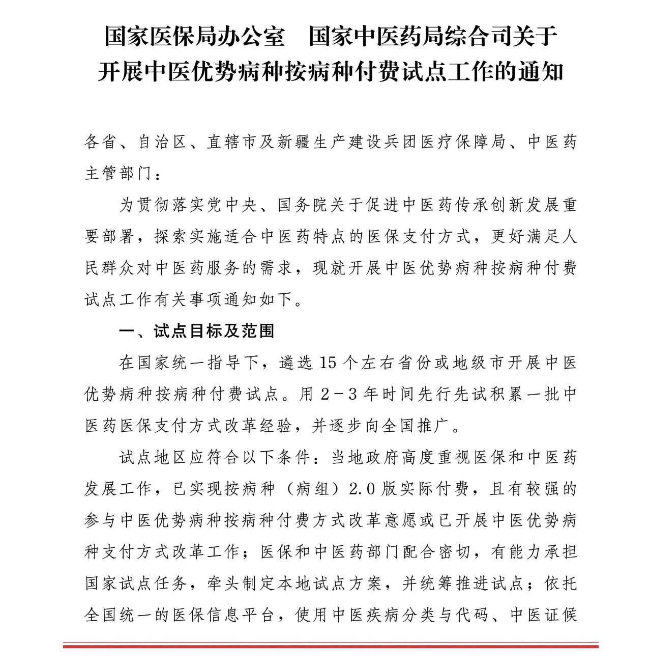 10月9日,国家医疗保障局联合国家中医药管理局发文,决定在全国范围内开展中医优势病种医保支付方式改革试点工作。这项改革通过建立差异化的结算机制,旨在让患者以更可负担的成本获得高质量的中医诊疗服务,同时推动医保基金使用效率提升。