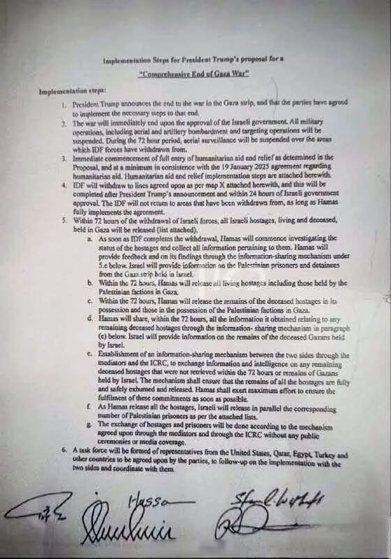 协议虽仅公布第一阶段,但其背后是包含“哈马斯解除武装”“加沙由技术官僚委员会过渡管理”“最终移交巴勒斯坦权力机构”等20项条款的完整方案。