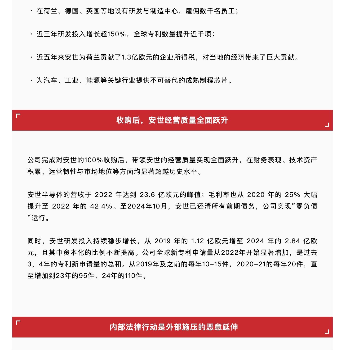 安世半导体个别外籍管理层试图通过法律程序强行改变安世半导体股权结构,其诉求与荷兰政府指令高度联动,本质是借政治压力剥夺股东权利、颠覆公司合法治理结构。