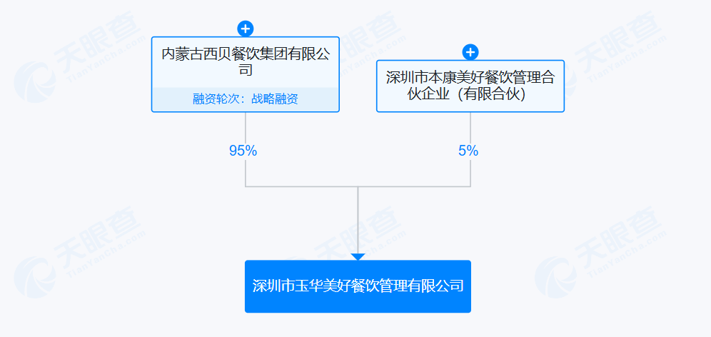 股东信息显示,玉华餐饮由内蒙古西贝餐饮集团有限公司持有95%的股权,深圳市本康美好餐饮管理合伙企业(有限合伙)持有5%的股权。