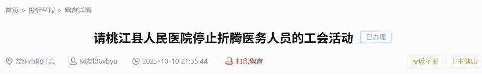 10月10日,湖南桃江县人民医院员工在网上发帖子投诉,称工会要举办活动,医护人员白天忙着抢救病人,晚上还要背演讲稿,非常折腾人。14日,桃江县卫健局工作人员表示,活动已经取消。