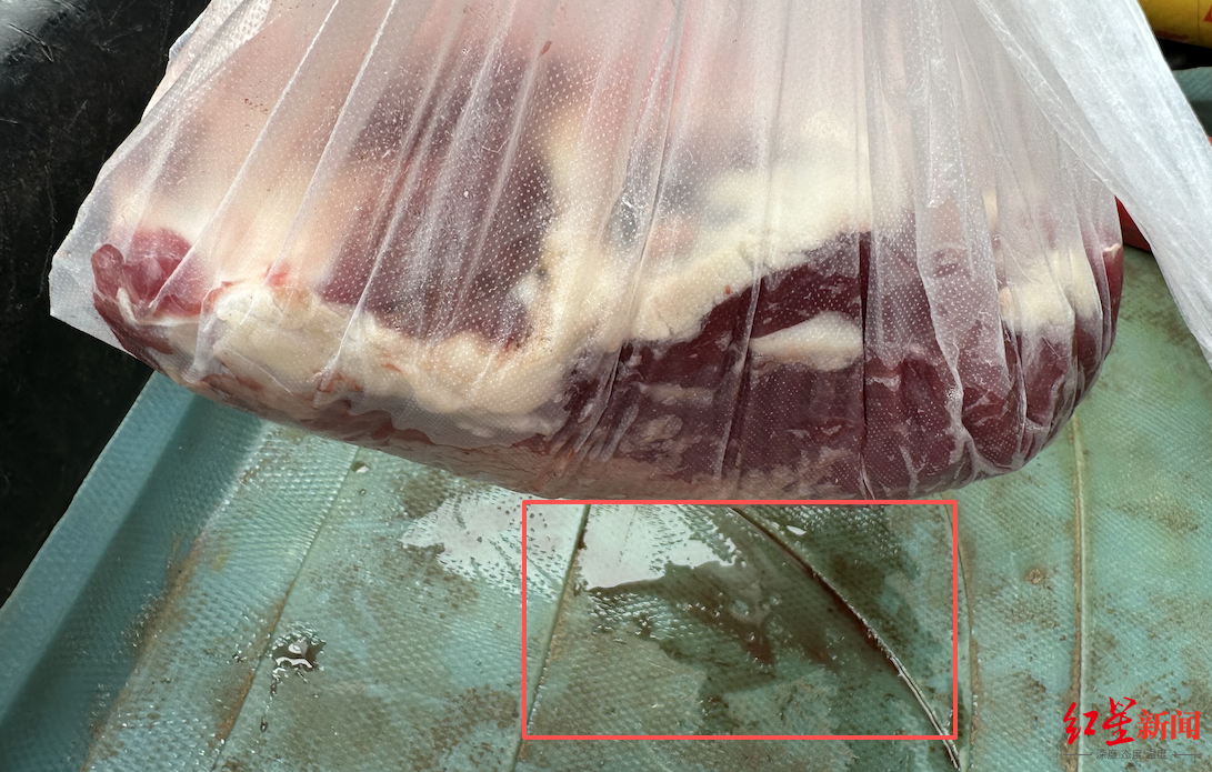 在江苏徐州丰县苏鲁豫皖农贸批发市场的一家牛肉店,红星新闻记者以消费者身份问老板牛肉是否注水时,老板的回答有些底气不足。记者从她家购买的牛肉,仅仅一个多小时就渗水明显,甚至流出了包装袋,送检结果也显示含水量明显超标。